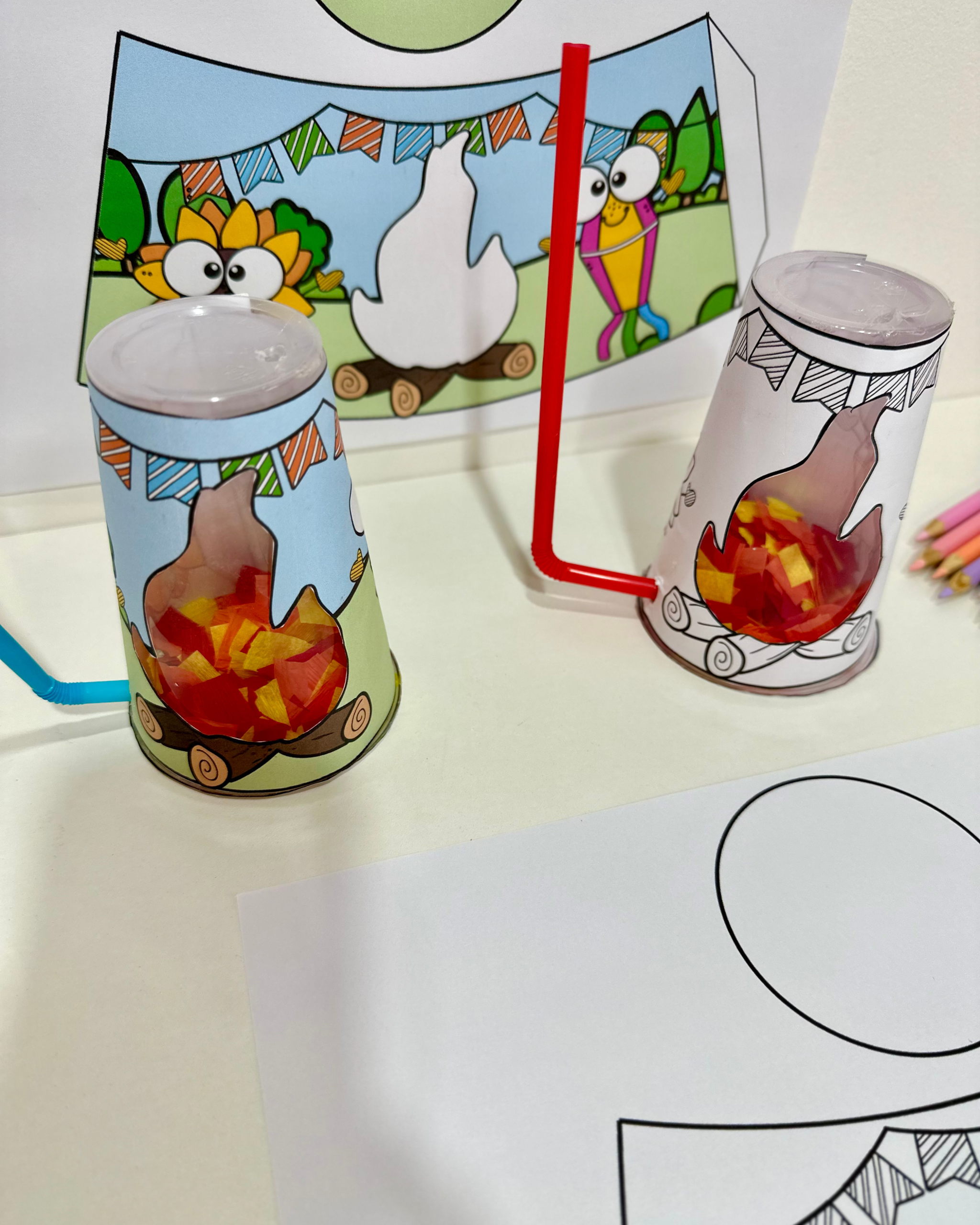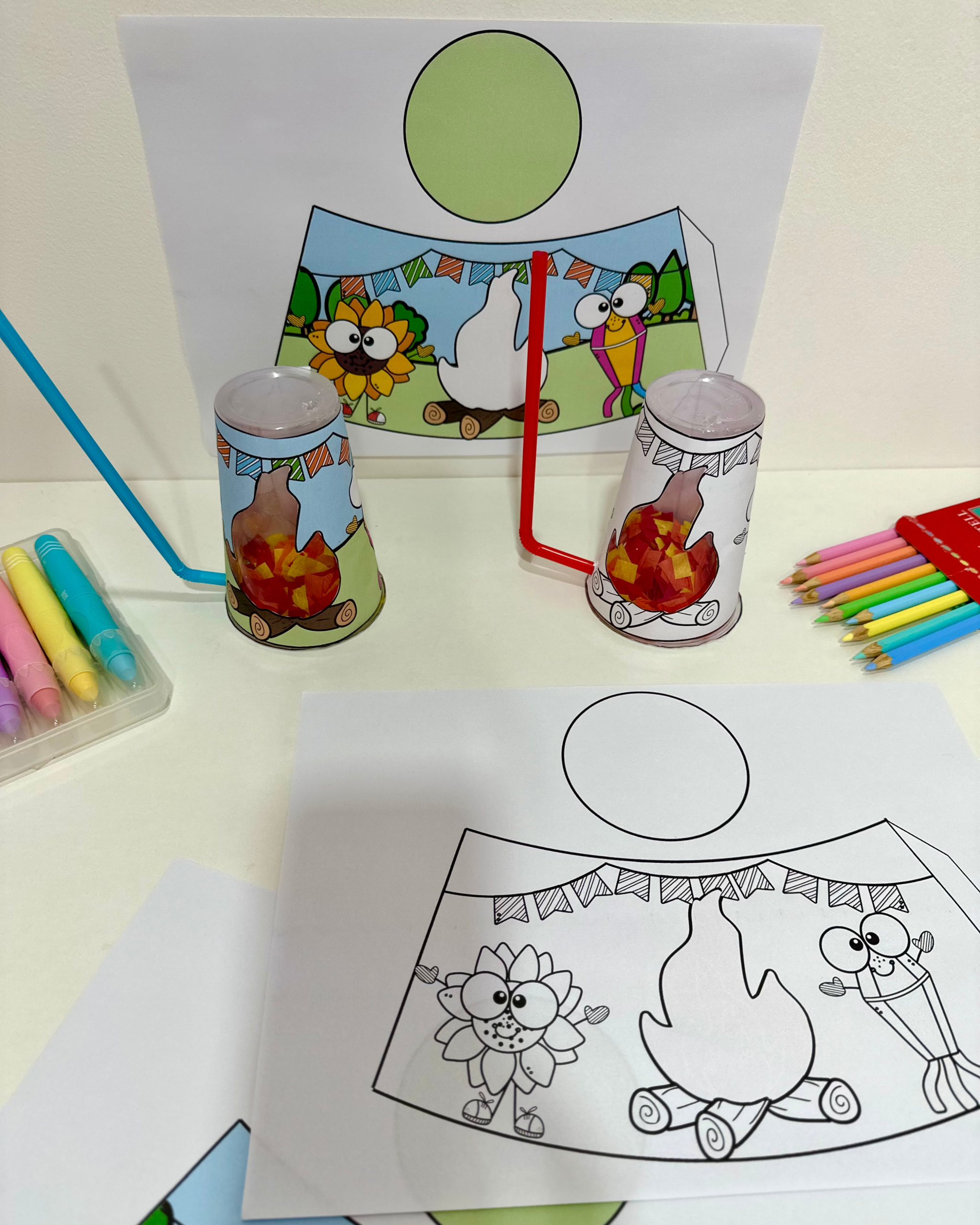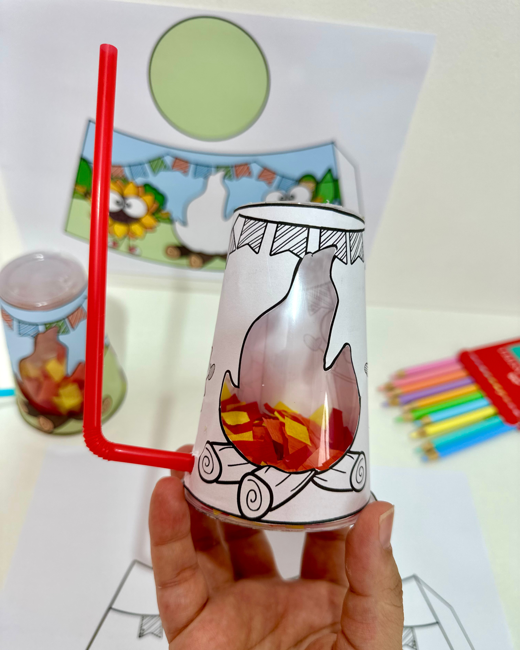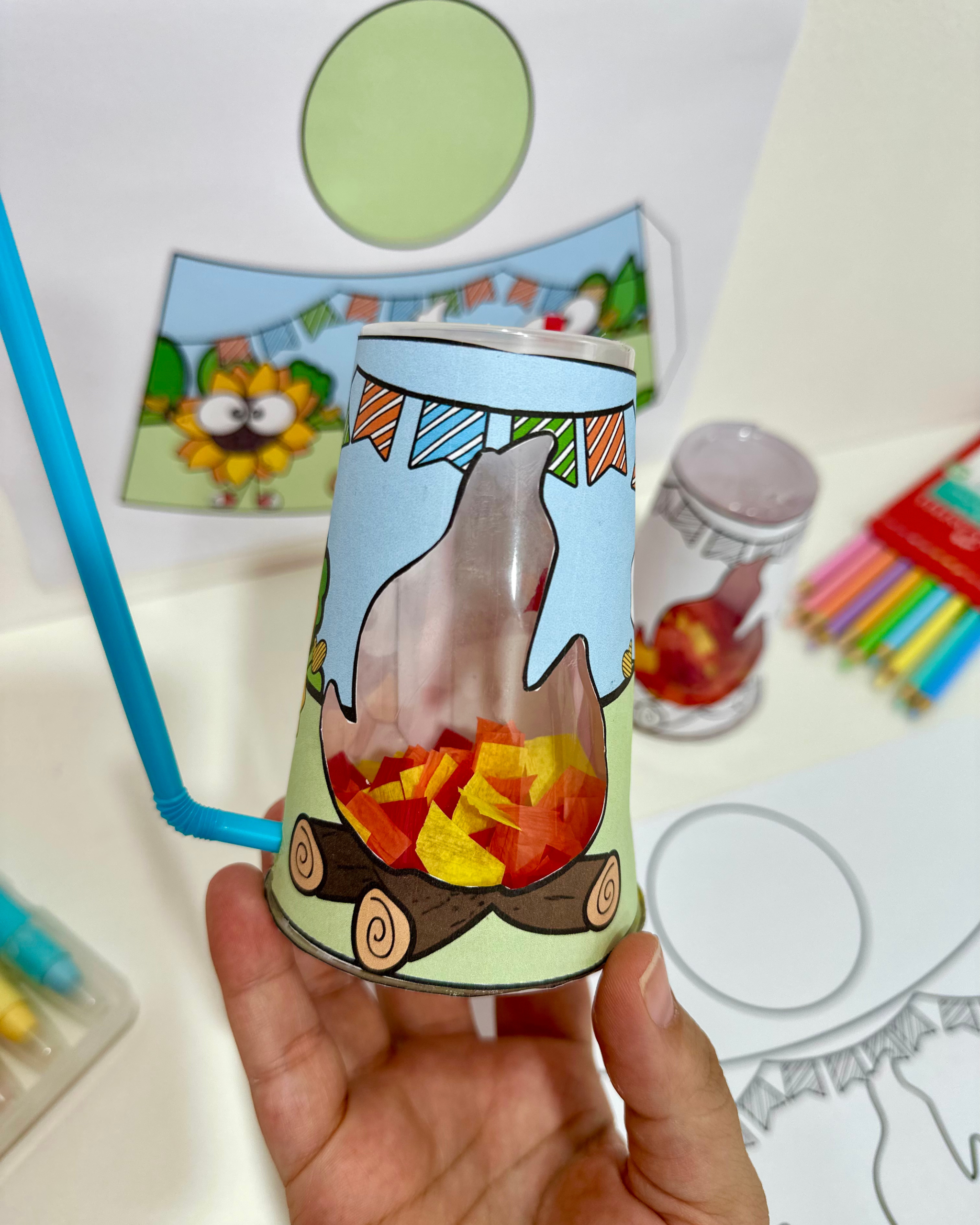 Recurso Fogueira no copo para trabalhar o tema Festa Junina com turmas da Educação Infantil.