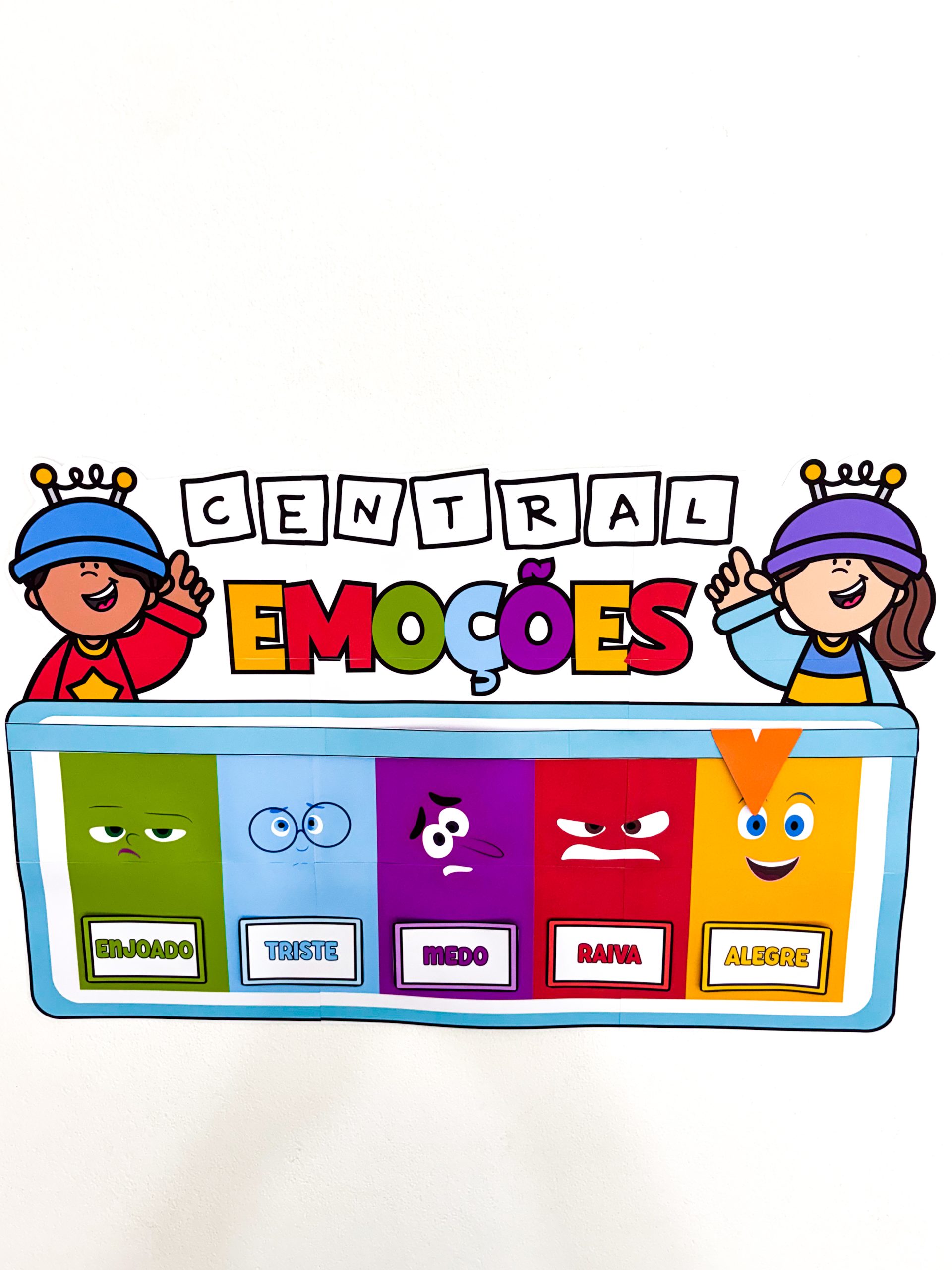 A Central das Emoções não é decoração. É ferramenta de mediação dentro da sala. A criança olha, identifica e nomeia: