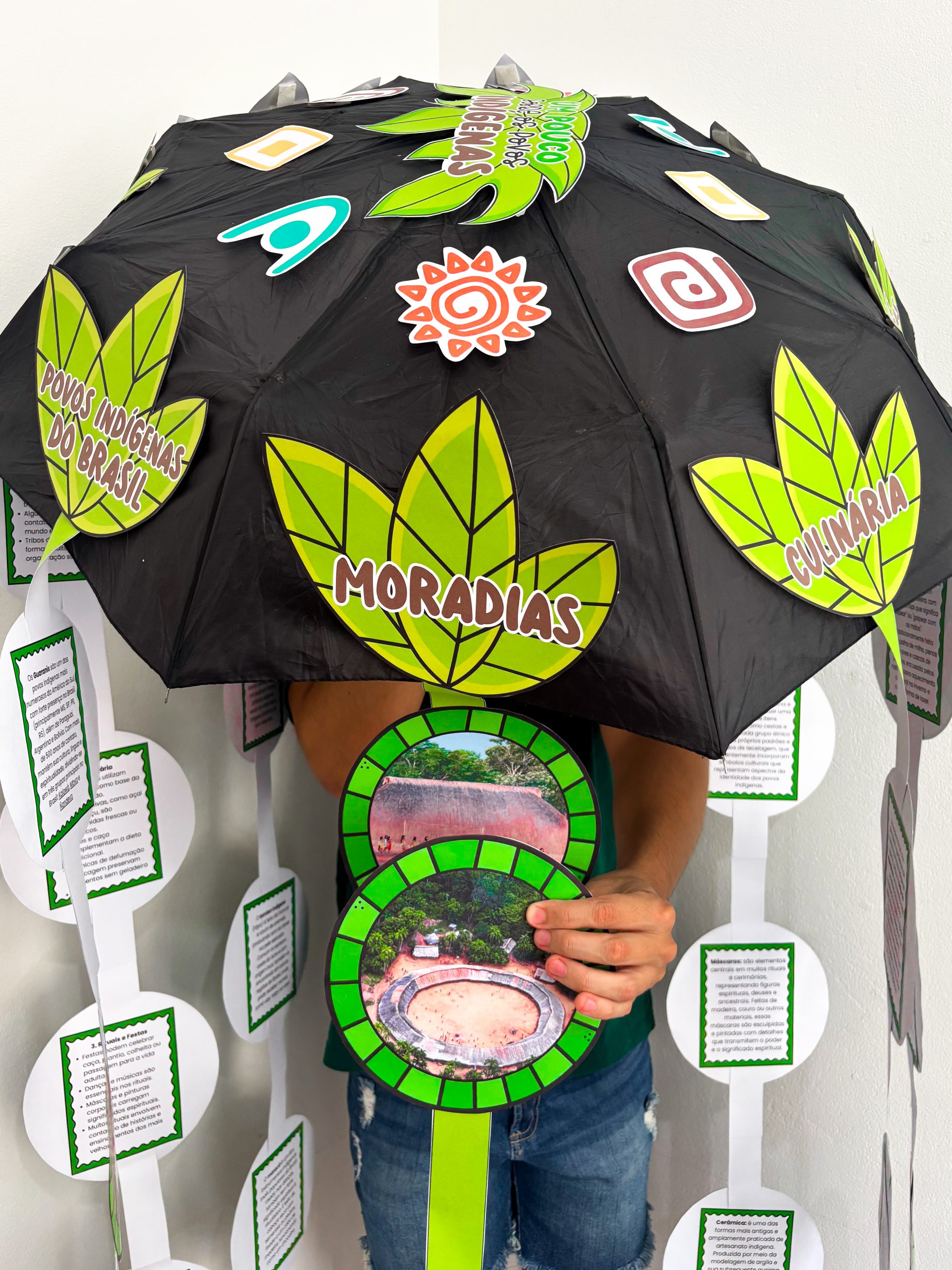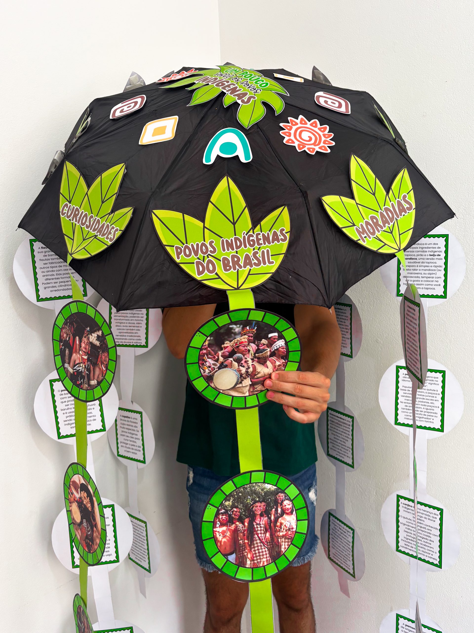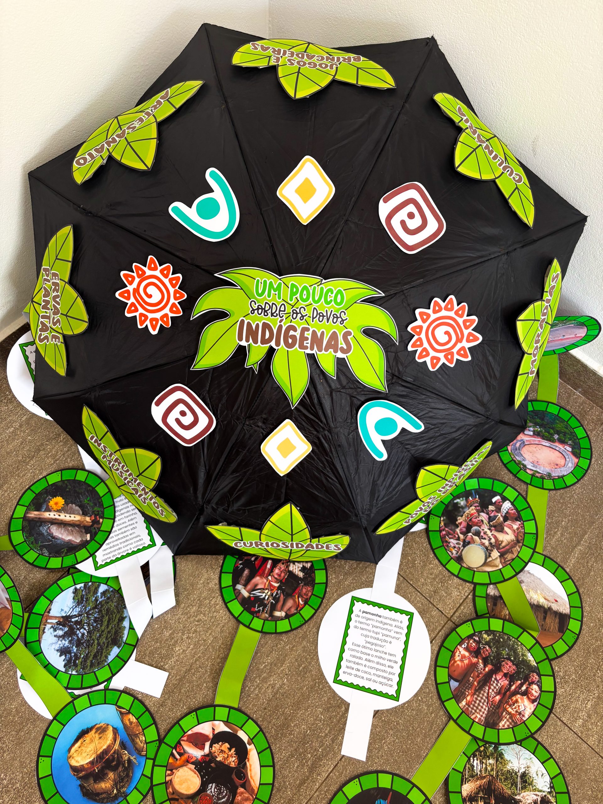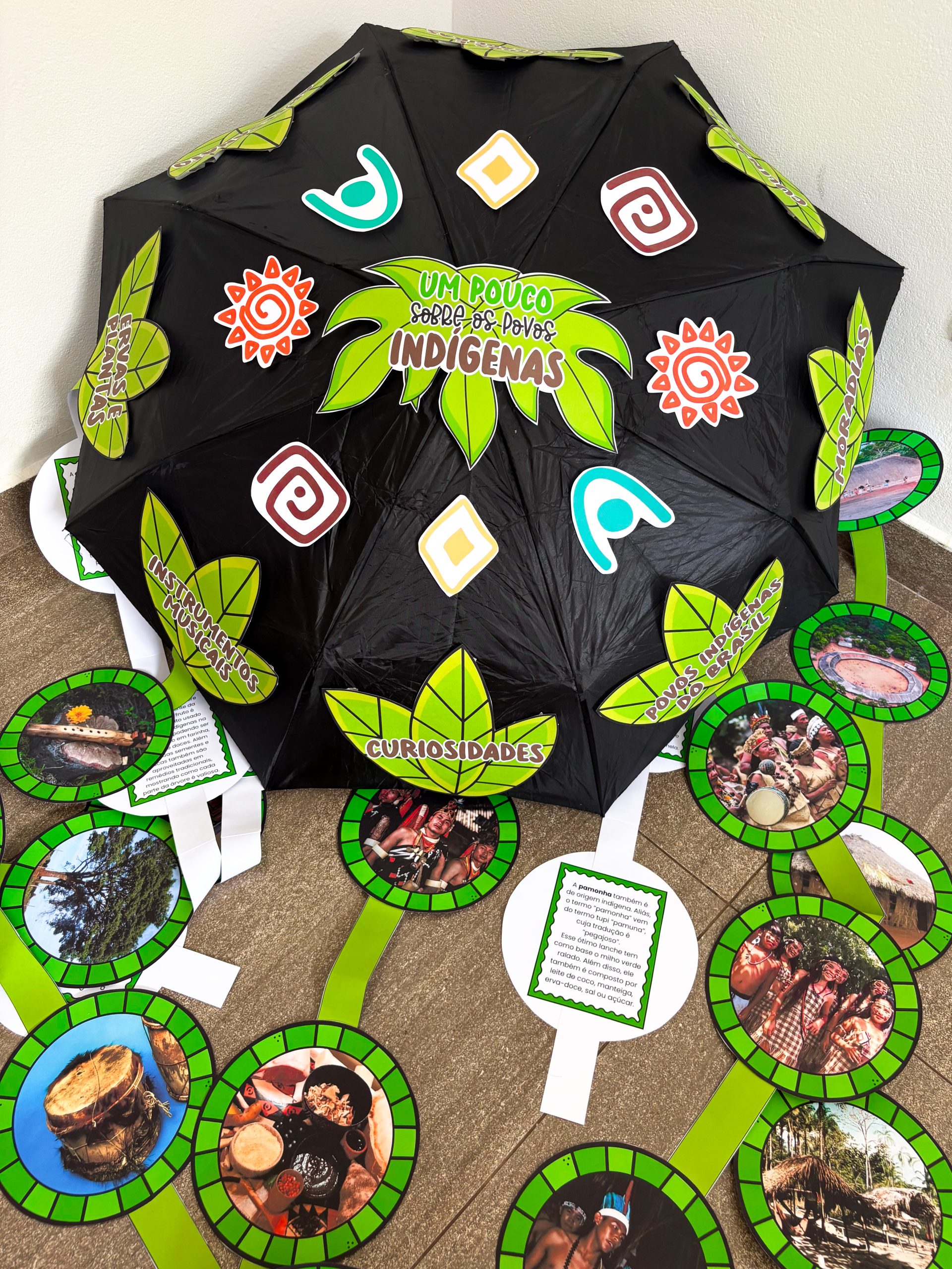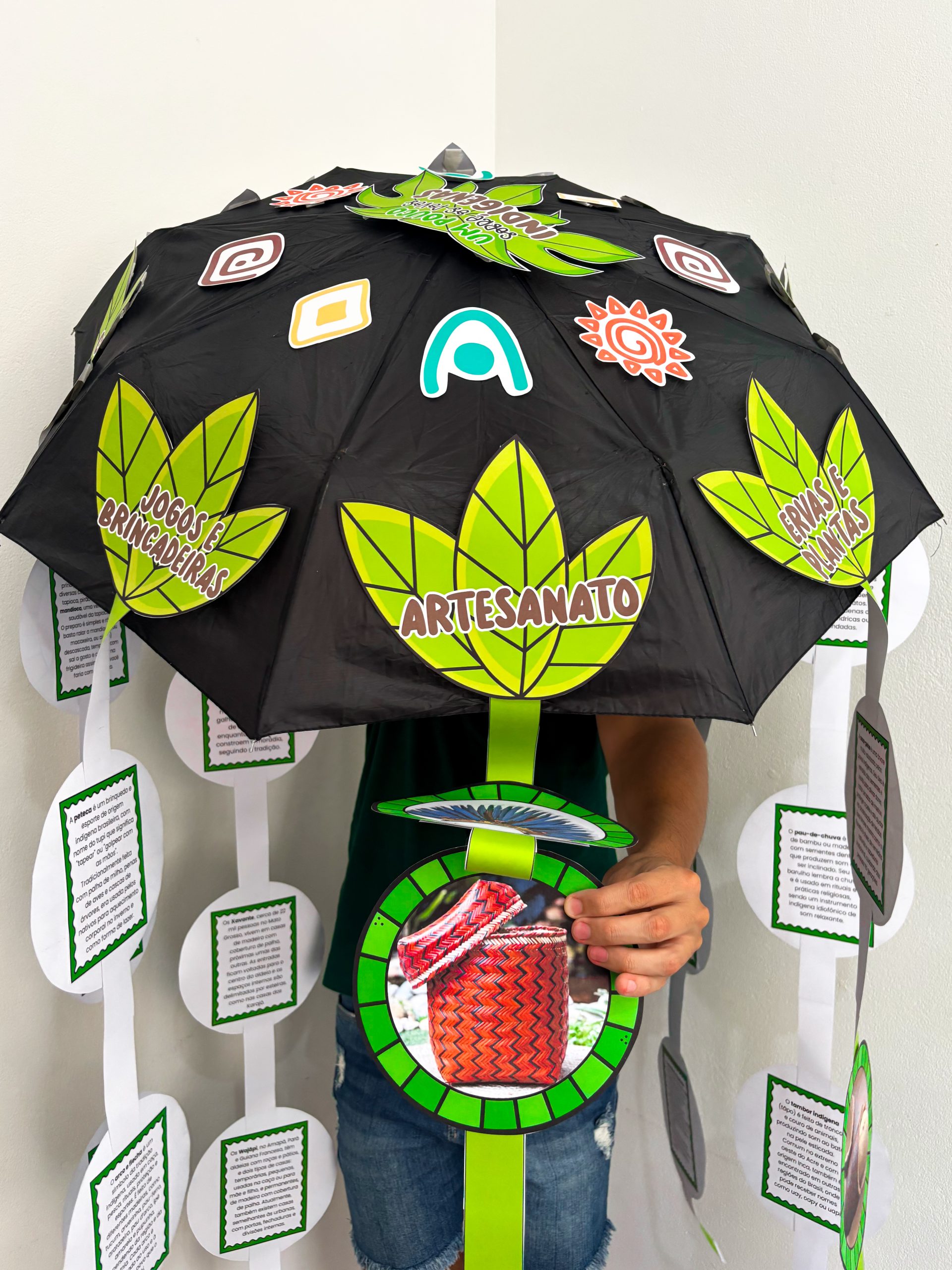 Esse guarda-chuva pedagógico apresenta, de forma visual e interativa, aspectos da cultura indígena: