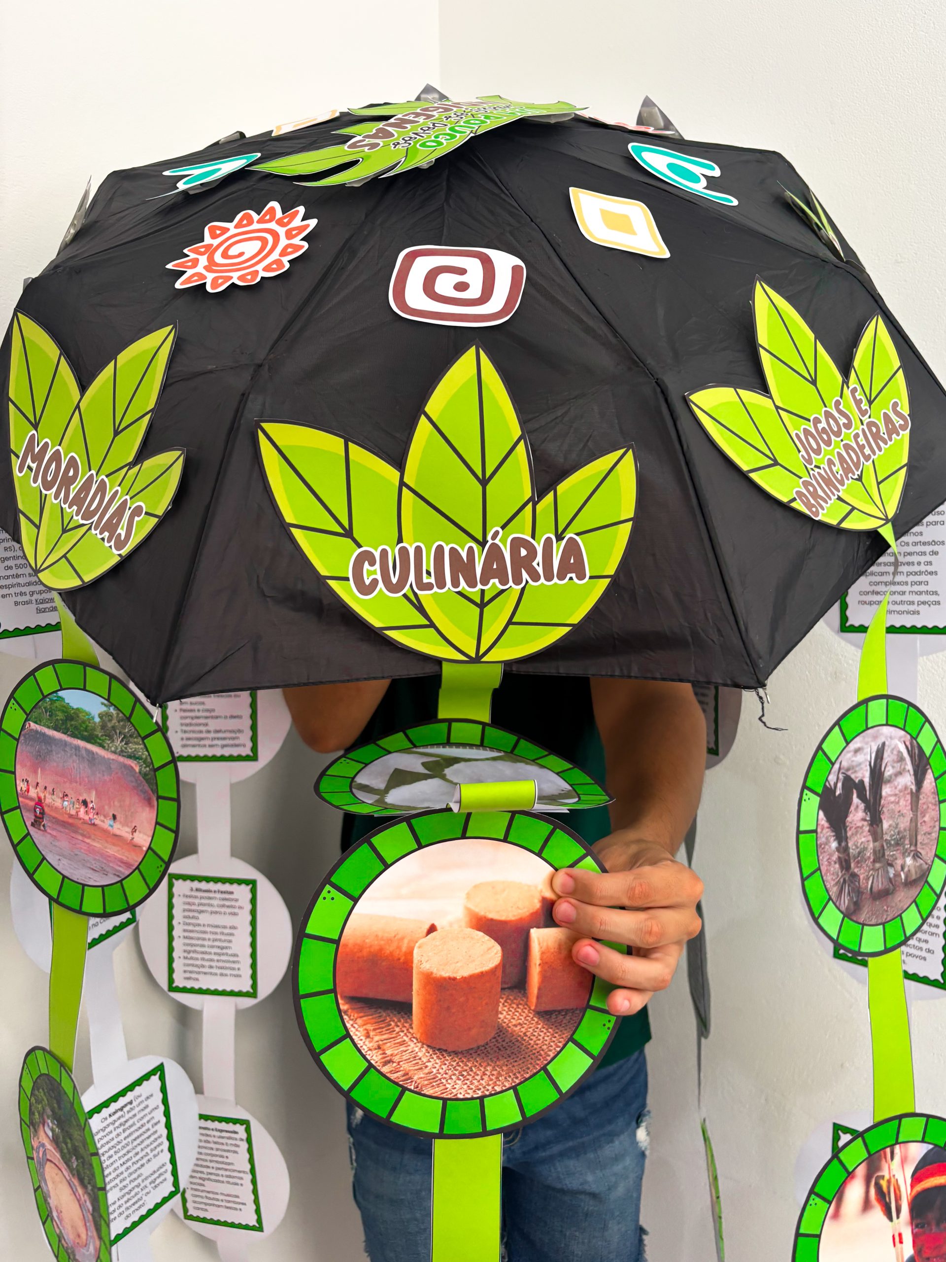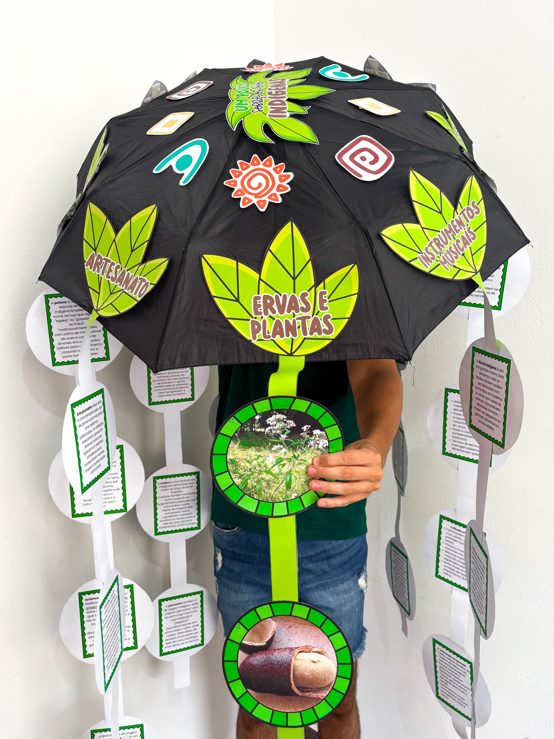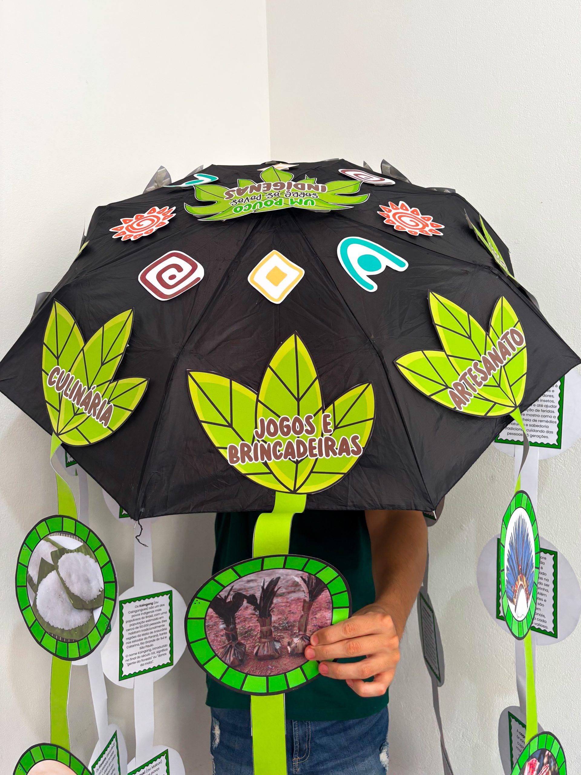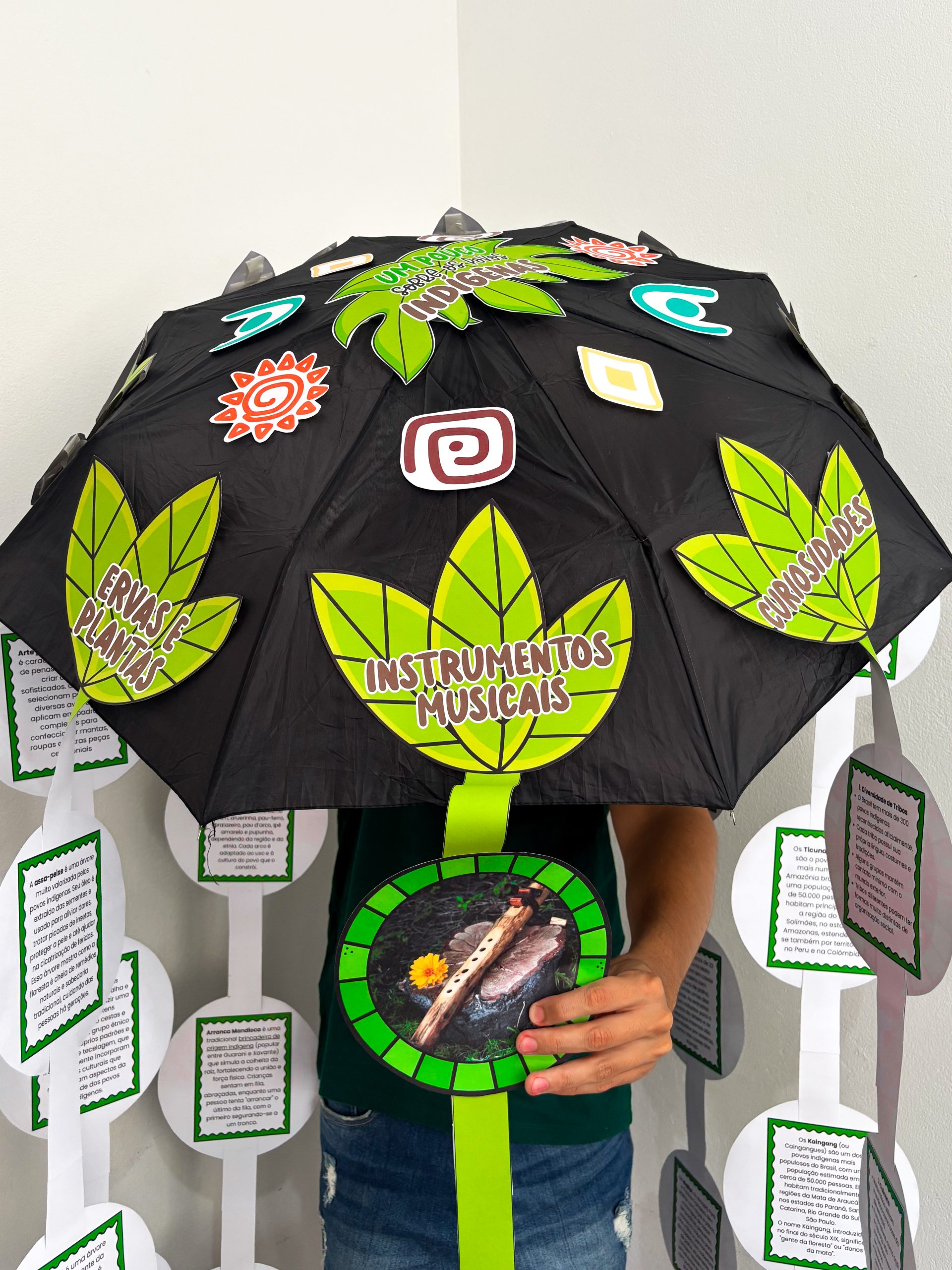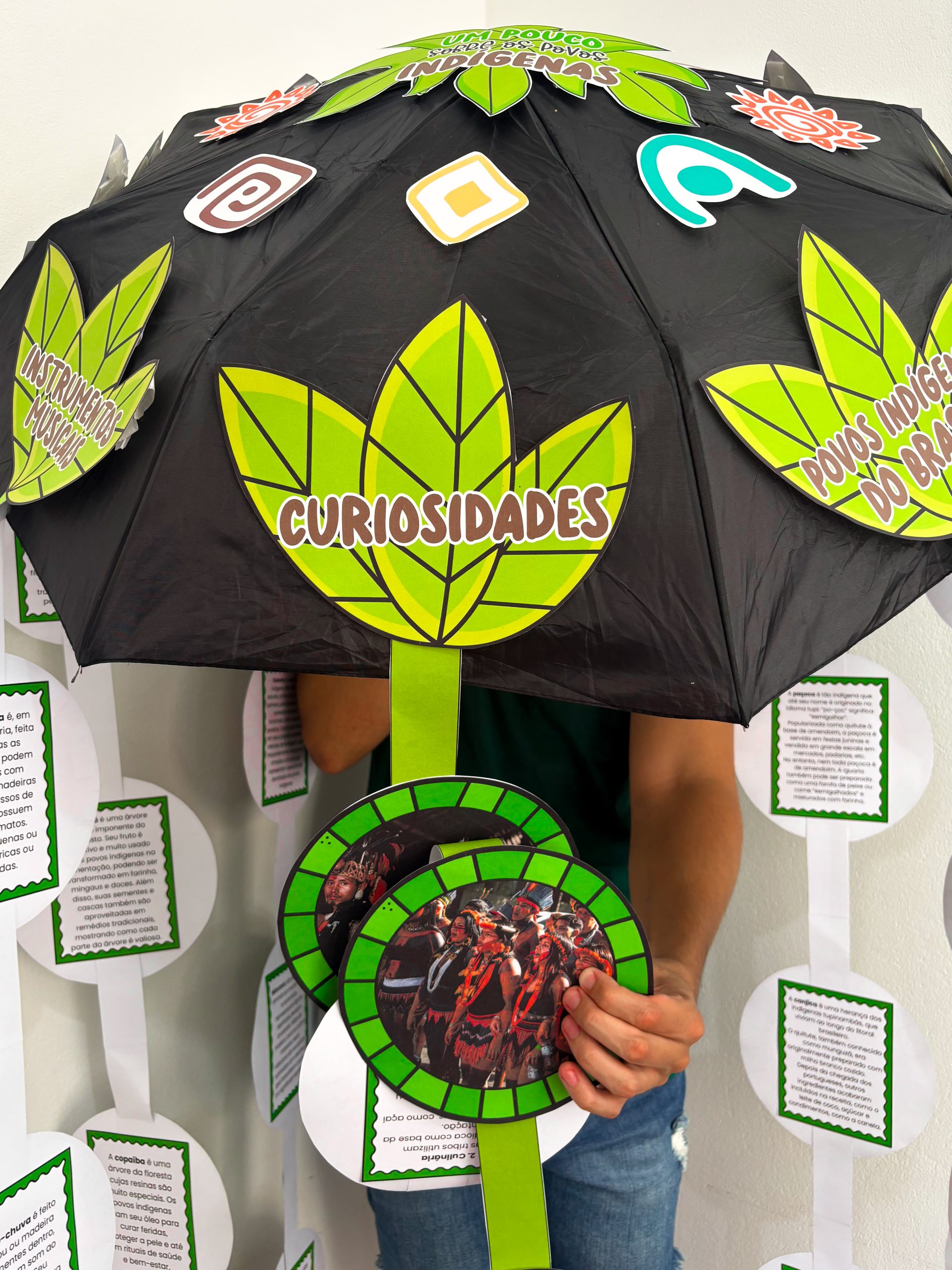 Esse guarda-chuva pedagógico apresenta, de forma visual e interativa, aspectos da cultura indígena:
