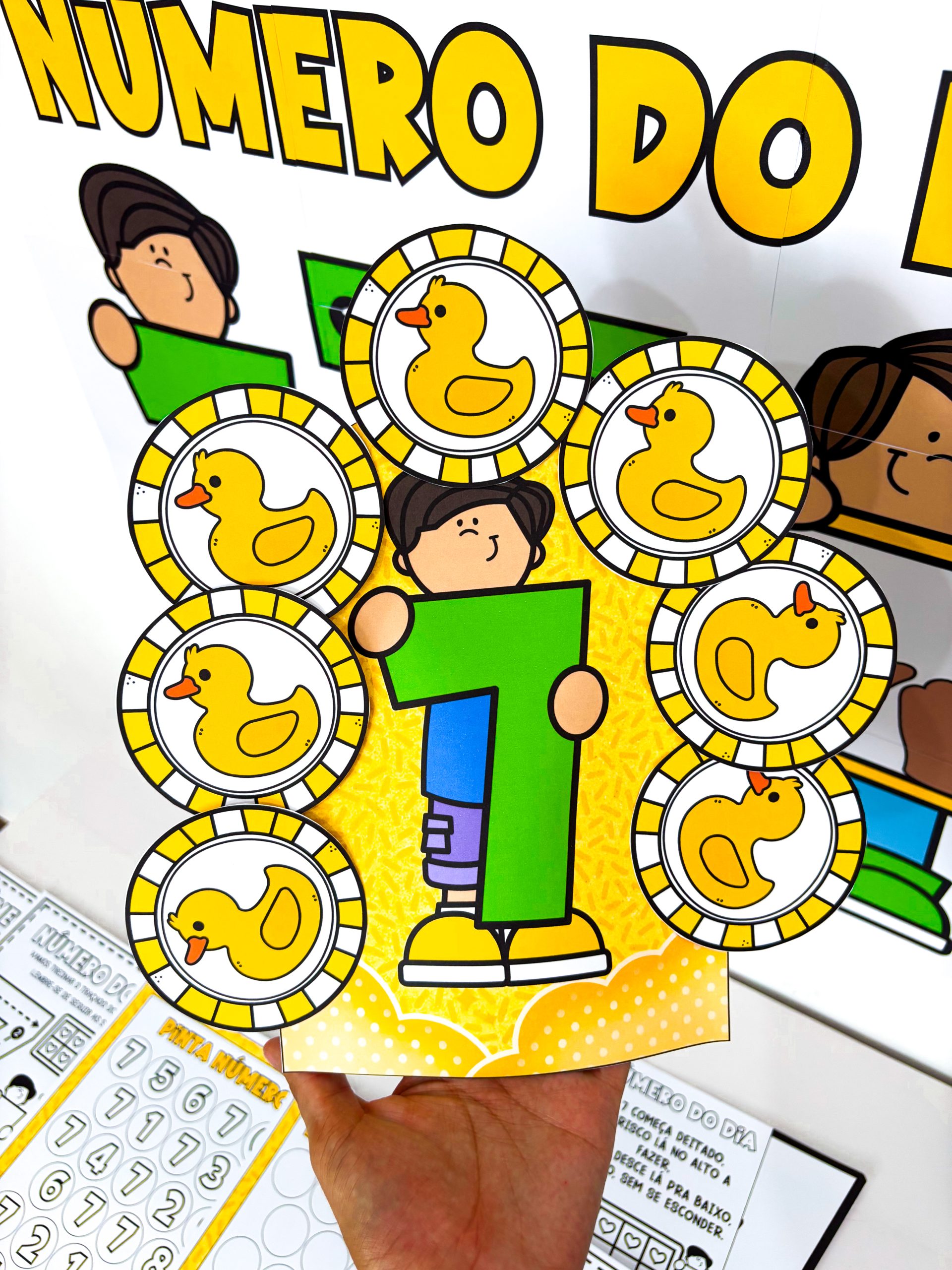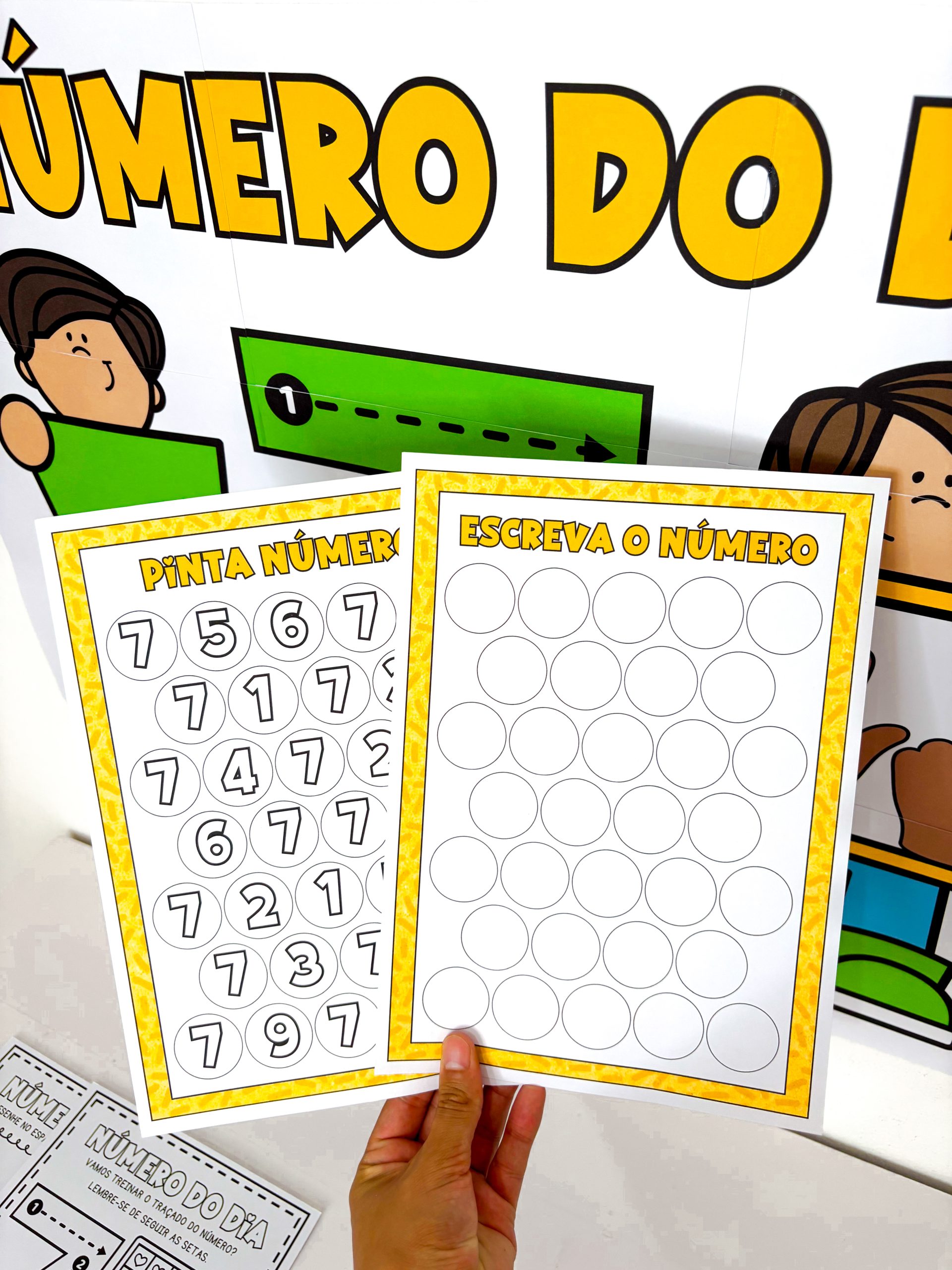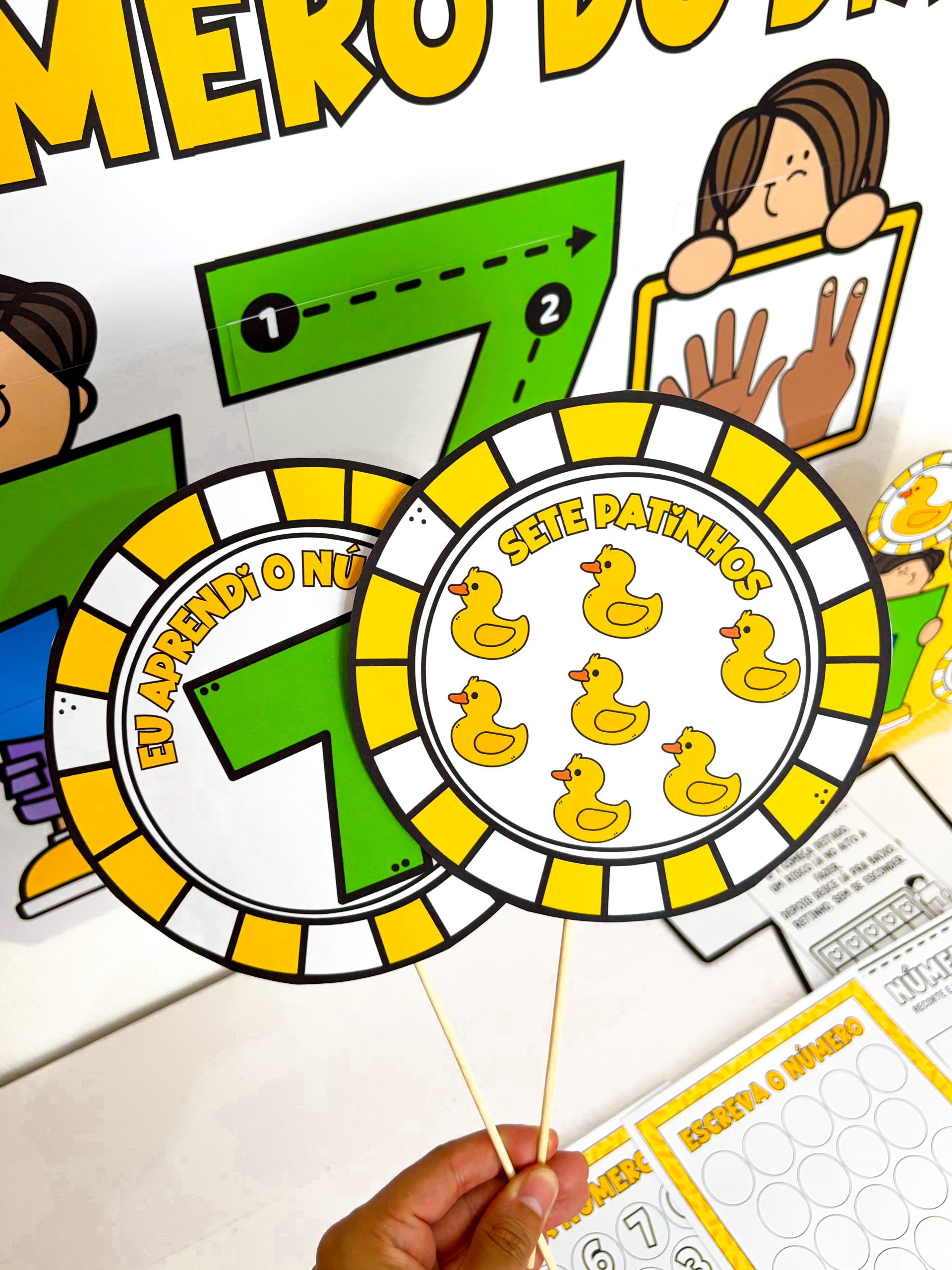aprende de forma lúdica e intencional E o melhor: tudo já prontinho pra você usar na sua rotina Painel temático para destacar o Número do Dia.