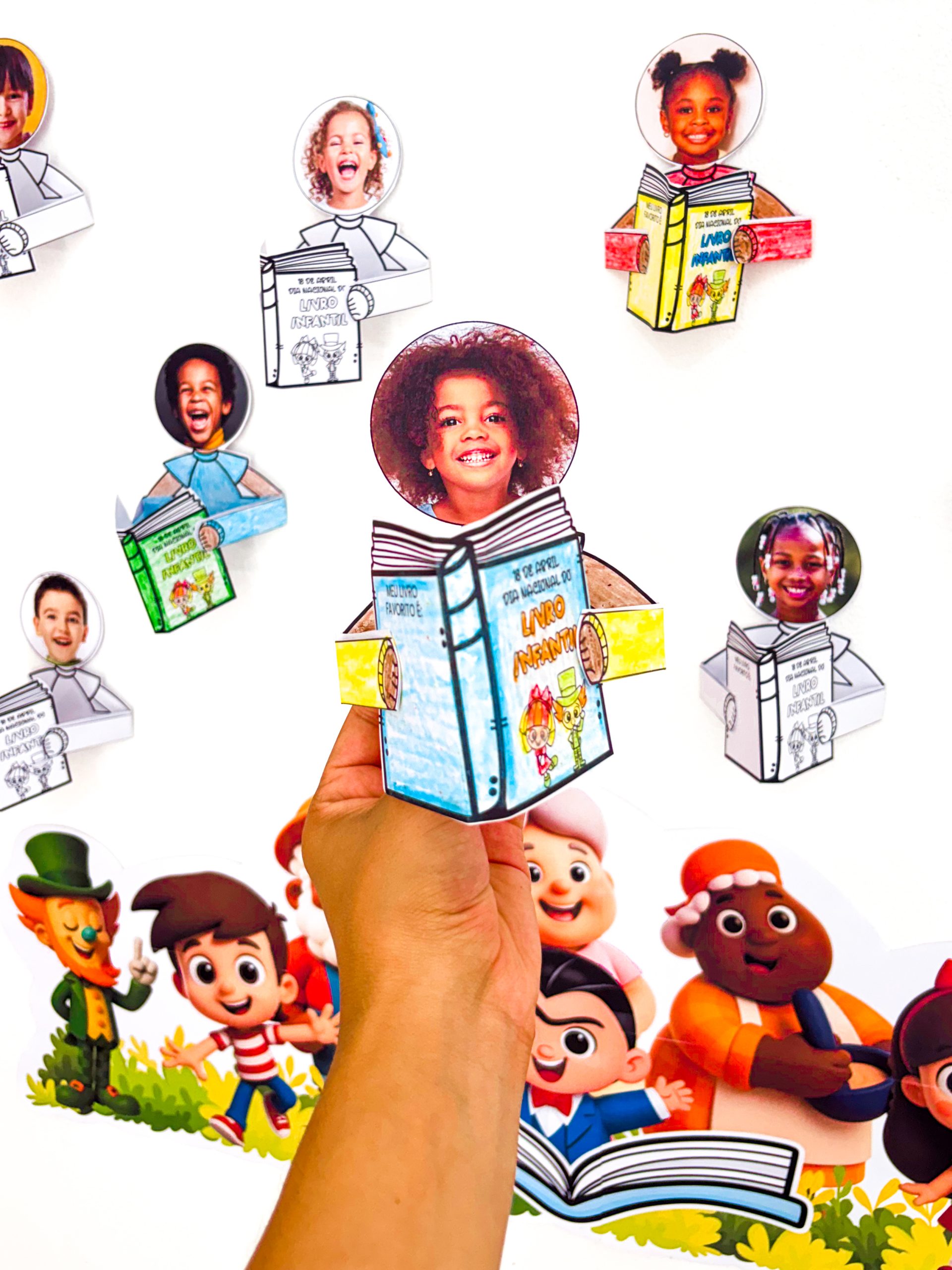 As crianças desenham seu livro preferido e passam a “morar” dentro dele, dando vida à leitura de forma significativa ˃✨estimula o gosto pelos livros valoriza a criatividade torna a data ainda mais especial.