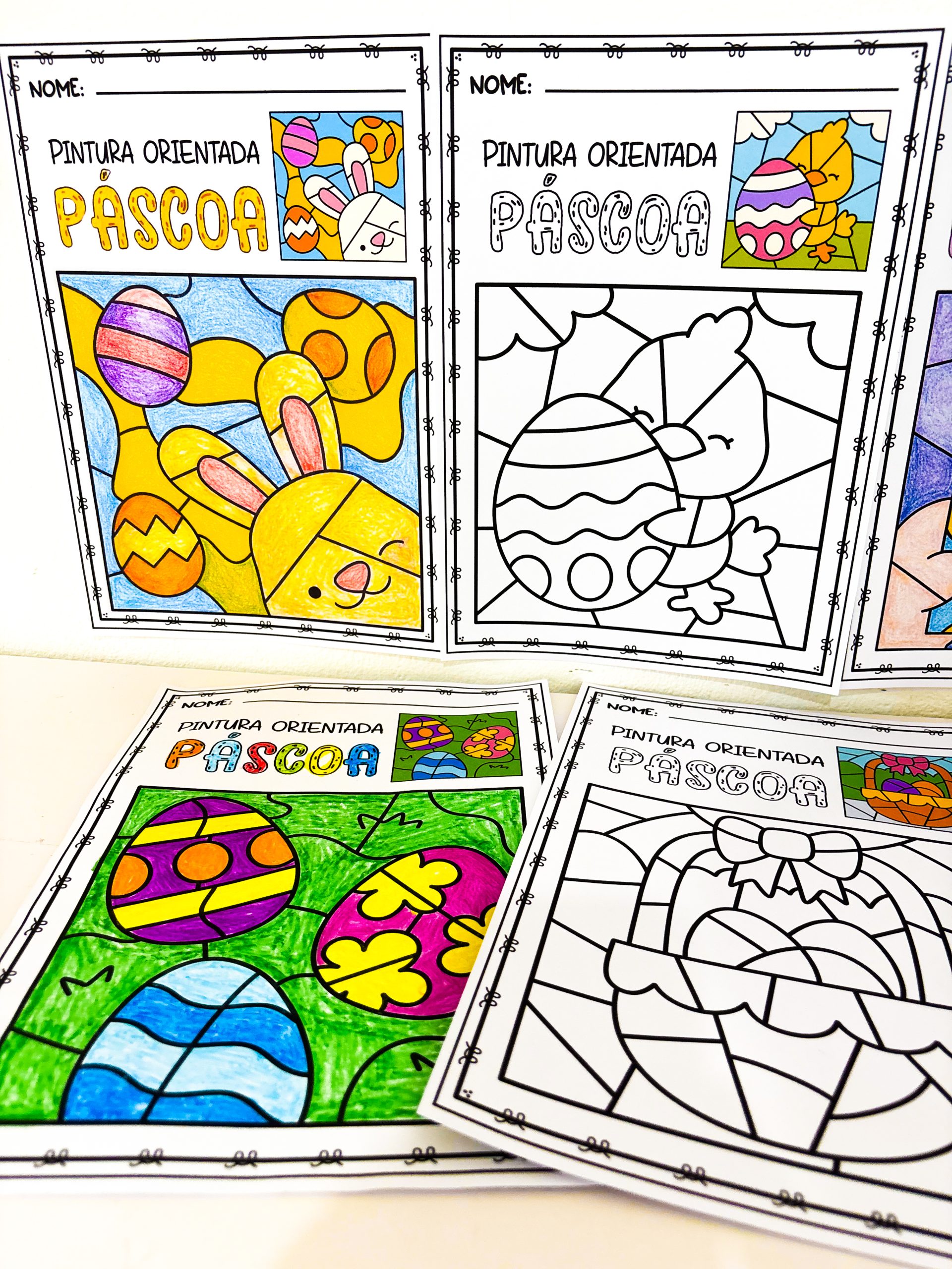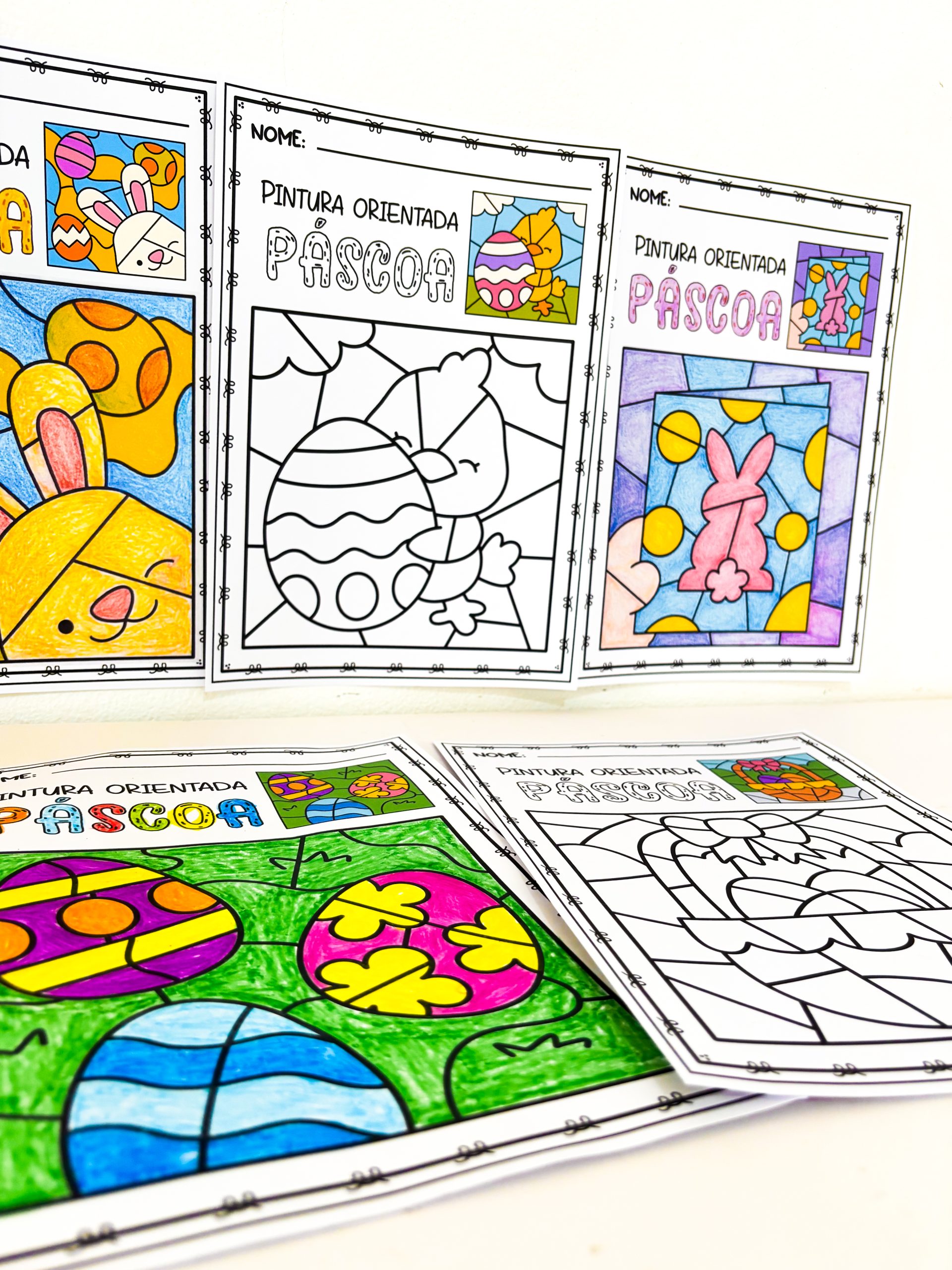 Com a Pintura Orientada – Páscoa, a criança não só colore — ela precisa observar, pensar e agir com intenção.